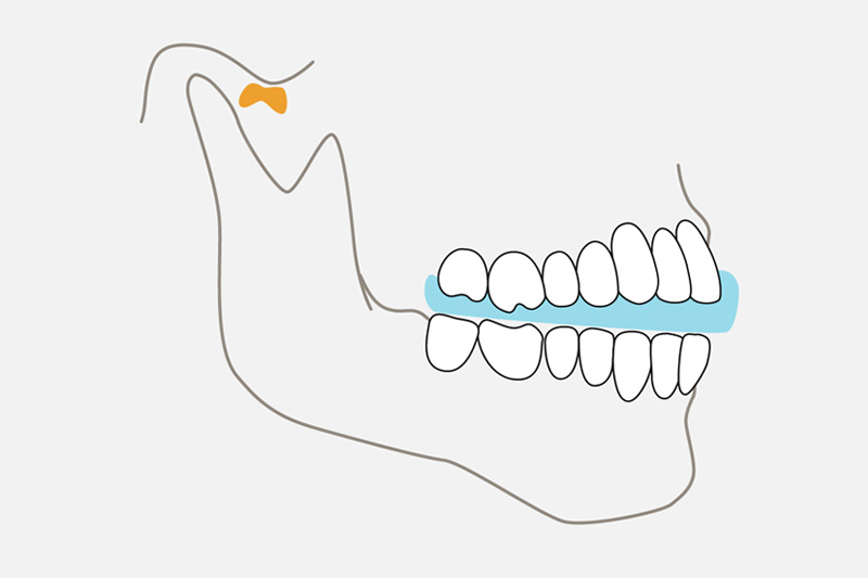 この位置がズレていると、歯がうまく噛み合わず、咬合ストレスが生じやすくなります。
